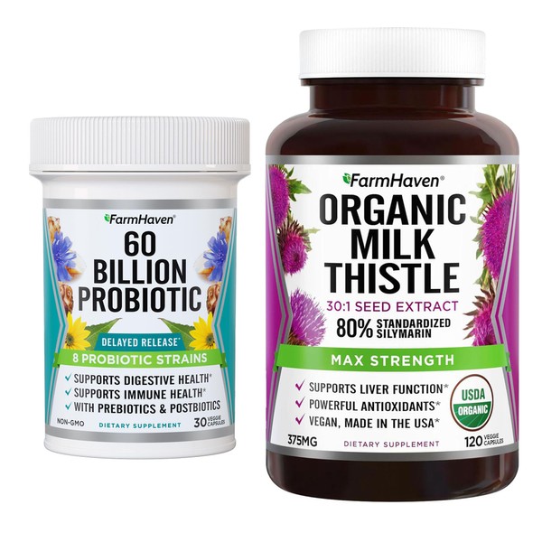 FarmHaven FarmHaven USDA Organic Milk Thistle Capsules and 60 Billion CFU Probiotic