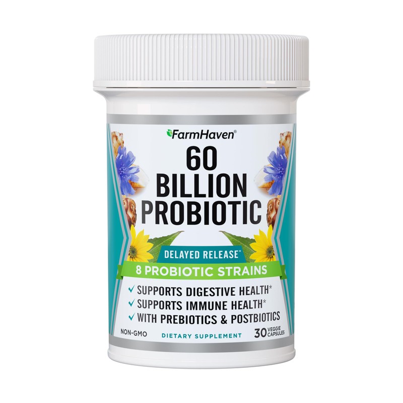 - 3-in-1 Advanced Gut Harmony: Prebiotics, Probiotics and Postbiotics work synergistically to support digestive comfort, enhance nutrient absorption, and bolster your immune system. FarmHaven's advanced 60 Billion CFU formula cultivates a thriving gut microbiome for overall well-being with 8 unique probiotic strains including the clinically studied L. acidophilus and B. Lactis strains to assist in the breakdown and absorption of nutrients from your food.*