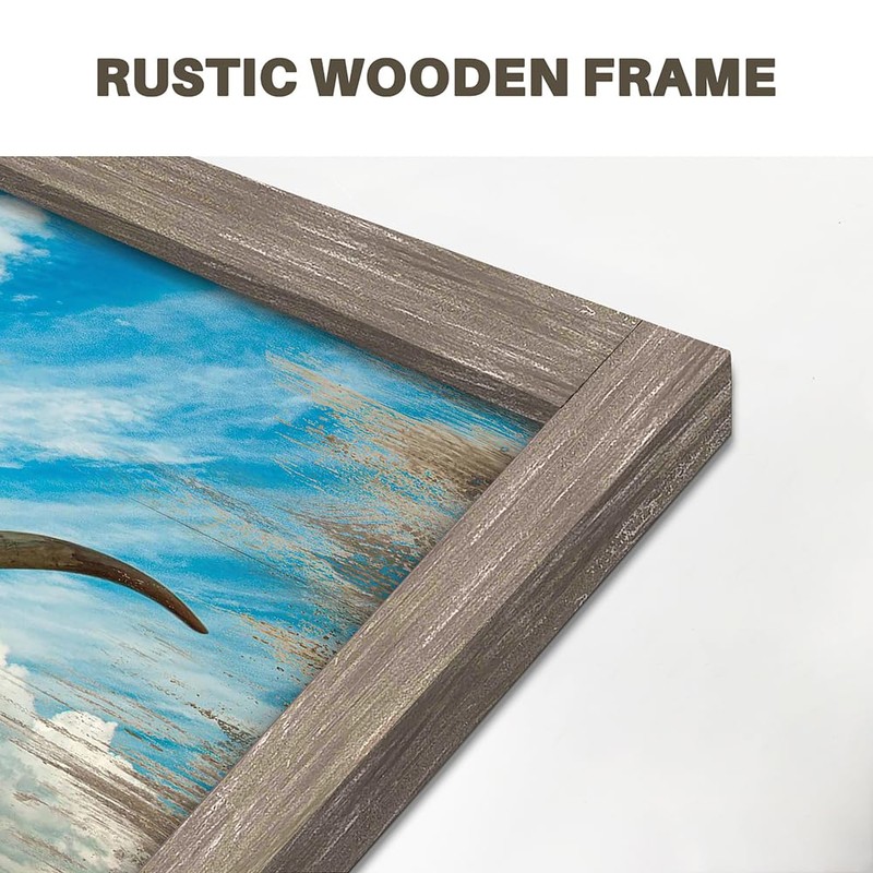 - Size Details: The rustic longhorn cattle painting framed is 48”x32”. It is an ideal size for leveling up the artistic feeling of home inside and making your room decor more cohesive in visual.A rustic cow wood wall art will bring a warm and inviting feeling to your living spaces