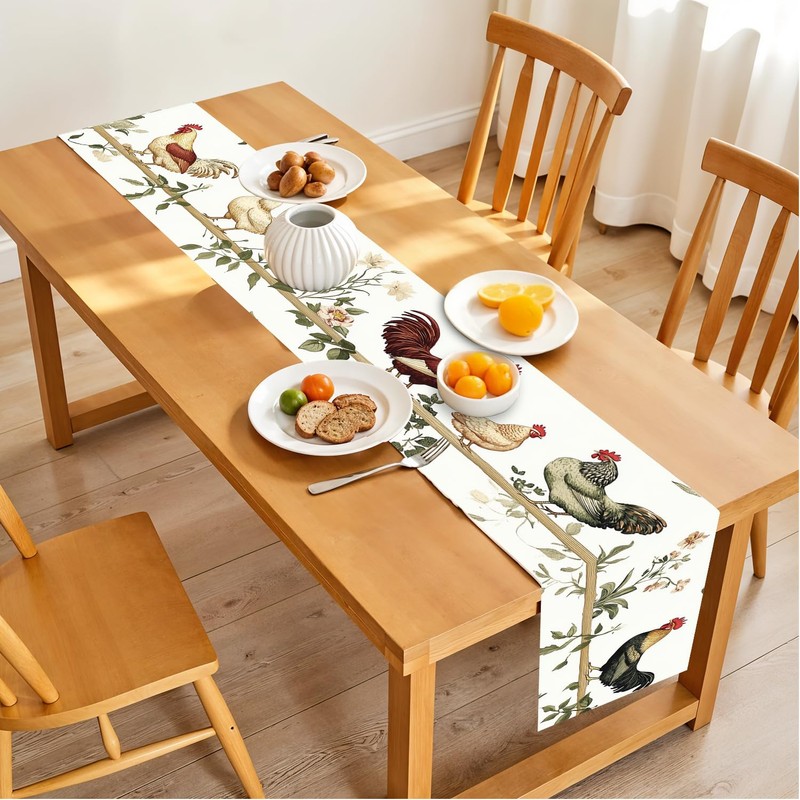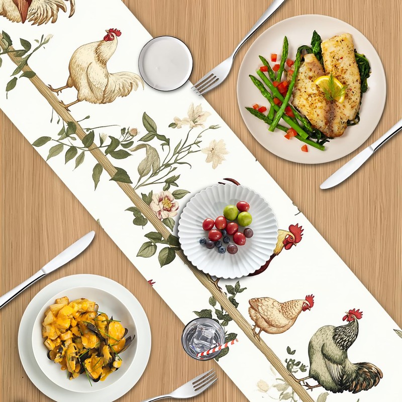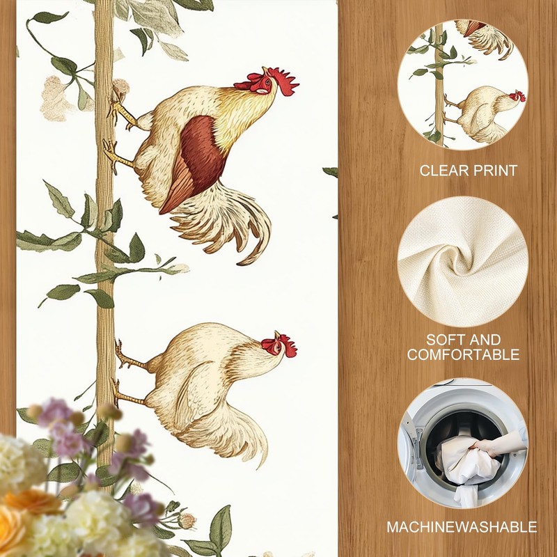 - Charming Country Farmhouse Style – Features elegant chickens and floral motifs, perfect for adding a cozy, rustic touch to your dining table, kitchen, or farmhouse décor.