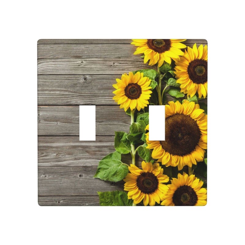 Farmhouse Sunflower Light Switch Cover Double Toggle Wall Plate 2 Gang Switch Plate Covers Rustic Wood Pattern Decorative Lightswitch Cover Plate, 4.5 x 4.5 Inch