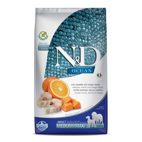 Farmina N&D Ocean Cod, Pumpkin and Orange Medium & Maxi Dry Dog Food 5.5 Pounds