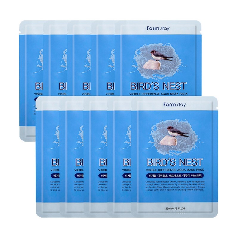 Farmstay Visible Difference Bird's Nest Aqua Mask Pack (10 sheets) / 팜스테이 비저블 디퍼런스 버드네스트 아쿠아 마스크팩 10매