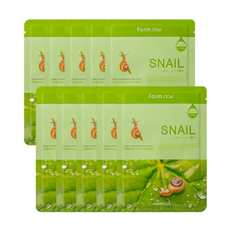 Farmstay Visible Difference Mask Pack Snail 10 Sheets / 팜스테이 비저블 디퍼런스 마스크팩 스네일 10매