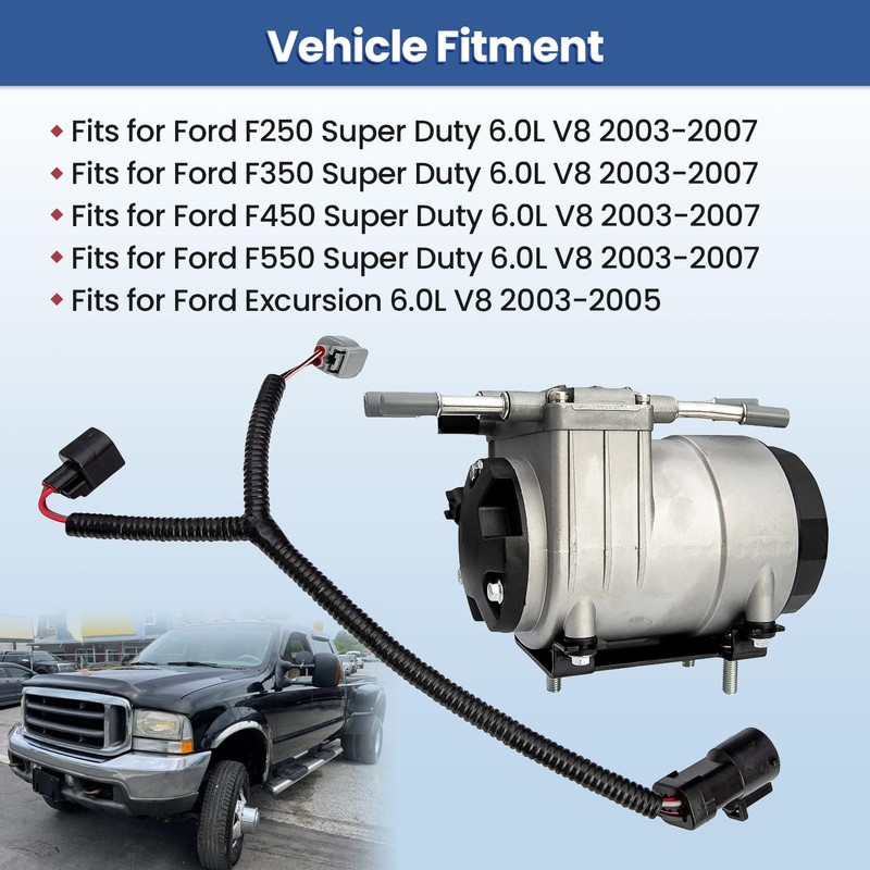 - 【Vehicle Fitment】6C3Z-9G282-C Fuel Pump Fits for 2003 2004 2005 2006 2007 Ford F250 F350 F450 F550 Fuel Pump Super Duty 6.0L ;Fits for 2003 2004 2005 Ford Excursion 6.0L V8. Please double check the above compatibility table, part photos, OE part number and part description to make sure it is what you need.