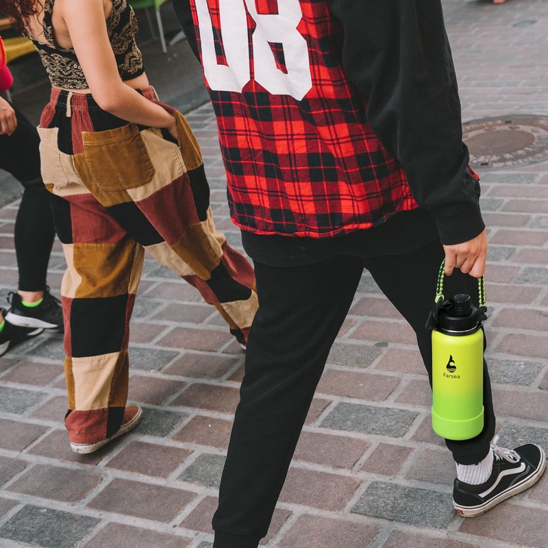- WHAT YOU'LL GET: Farsea is committed to providing the best value and highest quality to the customers; We offer Continuous After-sales Service and Solve All Problems; We offer several different capacity bottles(12 oz, 18oz, 24 oz, 32 oz, 40oz) and you can choose according to your needs; Package: Comes with 2 lids (Straw lid & Spout Lid), paracord holder, protective Silicone Boot, nice packing box, 2 straws, and straw brush