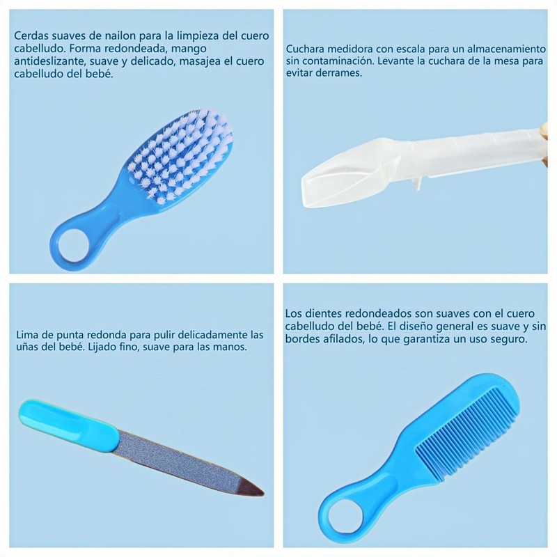 - [Materiales seguros, saludables y no tóxicos]: El set de cuidado está fabricado con plástico ABS de alta calidad, acero inoxidable y silicona médica sin BPA para garantizar la seguridad y un cuidado personalizado. Ya sea para el cuidado diario en casa o para viajes, ofrece a los padres tranquilidad y la mejor experiencia de cuidado.