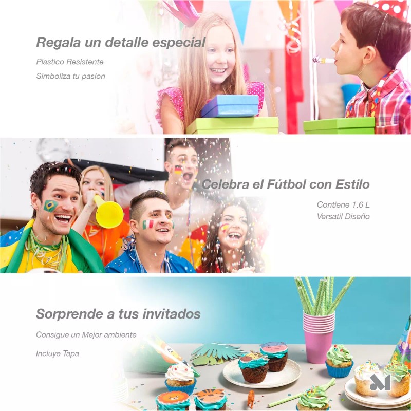 La copa vaso alcancía es ideal para tu negocio o para tu fiesta infantil, ya que es liviana, con un diseño resistente, llamativo y con temática de futbol, hará que tus clientes o tus invitados disfruten su bebida, Medidas: 31 x 12 cm.