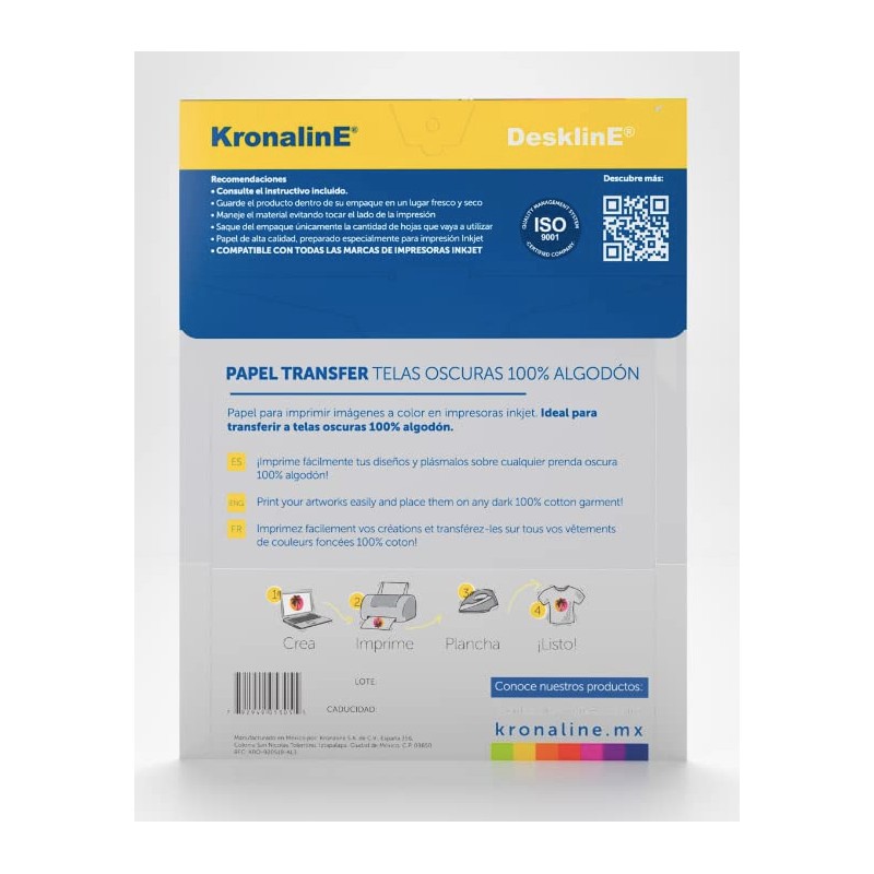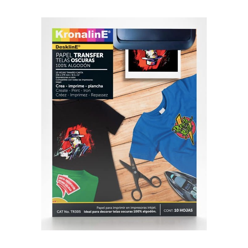 Farvisan Papel Transfer (2 PACK) para Telas Oscuras,Kronaline (Deskline) Impresiones inkjet a telas 100% algodón obscuras, ideal para plasmar diseños en las diferentes prendas de una manera práctica