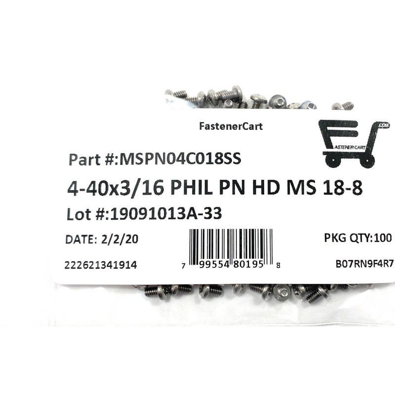 FAS (100) 4-40x3/16 Stainless Steel Phillips Pan Head Machine Screws 18-8 (100 PCS)