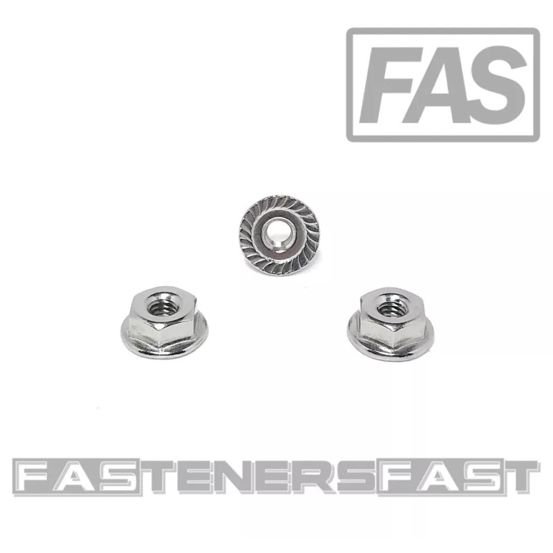 FAS (50) 8-32 Stainless Steel Serrated Flange Nuts 304 Stainless Flange Lock Nuts