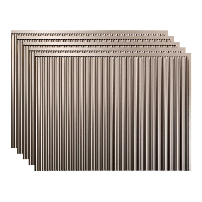 Fasade 18in x 24in Rib Backsplash Panel - Brushed Nickel, 6x6 Inch Sample