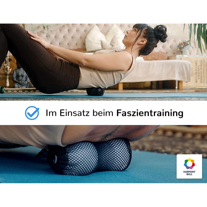 - Box contents: 2 x HARMONY BALL 7.2 cm in a practical net - a ball can be used alone or as a duoset in the net