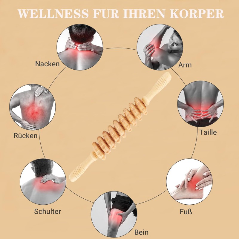 - Versatile massage roller massager: perfectly processed fascia roller wood for body shaping. With its nine freely movable wooden discs guarantee a deeply effective massage to solve fascia adhesions. The ergonomic curve significantly increases comfort compared to rolled models. Use this versatile massage roller massager to increase blood circulation, tighten the tissue and relieve tension - an efficient solution for your well-being.