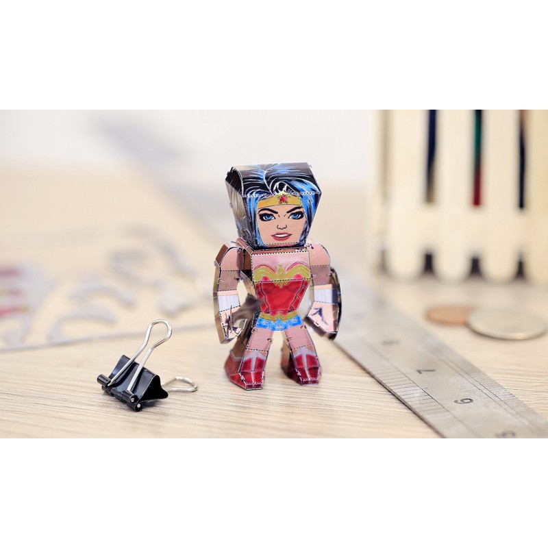 Fascinations MEM025 Metal Earth Metallbausätze - Justice League Mini Wonder Woman, lasergeschnittener 3D-Konstruktionsbausatz, 3D Metall Puzzle, DIY Modellbausatz mit 1 Metallplatine, ab 14 Jahre
