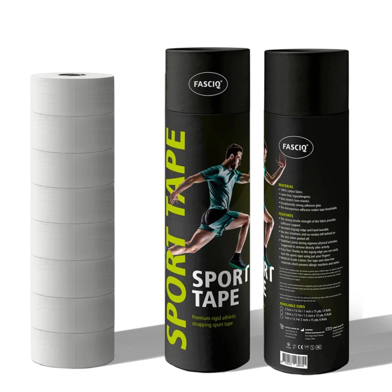 - FASCIQ Rigid Sport Strapping Tape is made from the highest quality soft cotton, our sports tape will never disappoint. Packed in an awesome tube that contains 8 Rolls 1.5 inches x 15 yards.