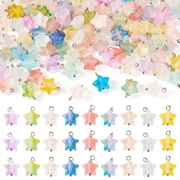 - Premium Bulk Set for Jewelry Crafting: Package includes 100 pcs vibrant acrylic star charms (13 mm) with brass loops(hole: 2.3 mm) - perfect for jewelry makers needing bulk pendant charms. Each gold foil-coated plastic star features a candy-inspired design, ideal for creating Kandi bracelets, necklaces, or DIY craft projects
