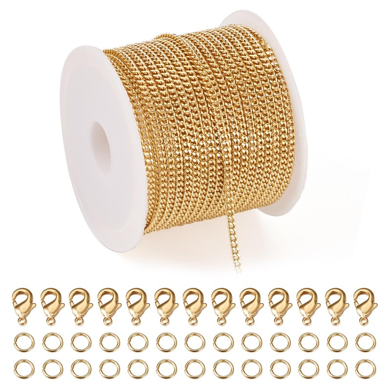 - You Will Receive: This kit includes 5 meters of gold plated brass curb chain(2.9x2.1x1mm), along with 20pcs brass clasps and 40pcs jump rings, providing you with all the necessary components for your jewelry making projects.