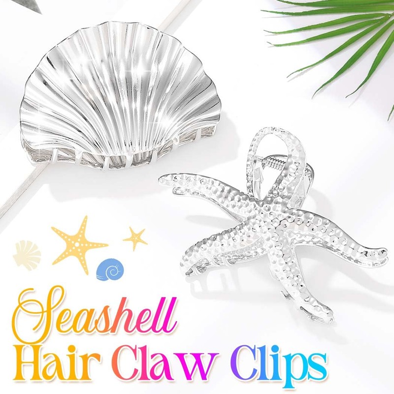 Fashey Seashell Hair Claw Clips Gold Metal Hair Clip Starfish Claw Clip Hair Accessories for Women and Girls (Pack of 2) (Silver)
