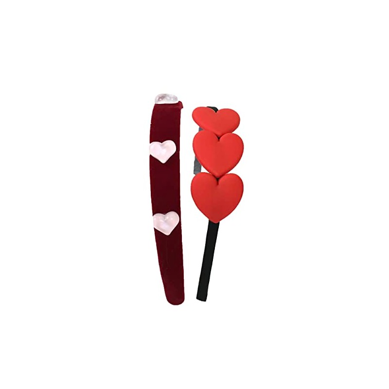 - Express your personality with two distinct looks. One headband features bold, playful red hearts, while the other boasts a luxurious velvet texture adorned with delicate pink heart accents.