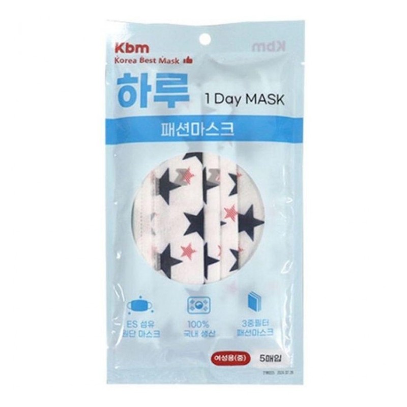 Fashion Disposable Star Check Mask 5-Pack with Filter 3-Layer Star Pattern 2ea