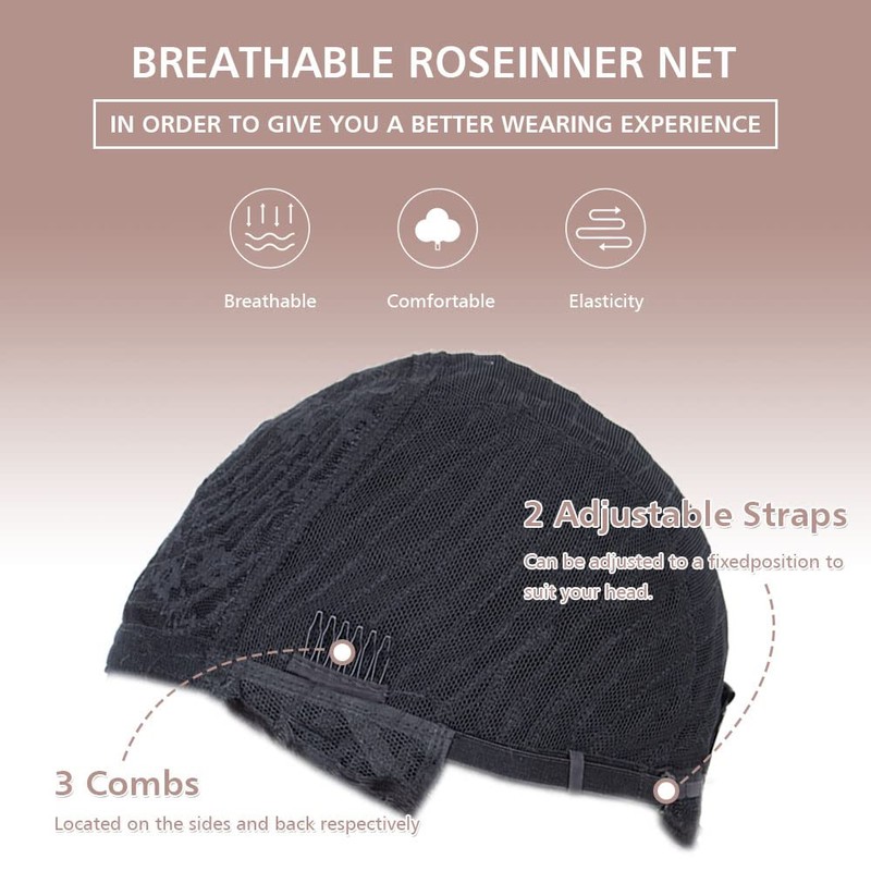 - Wig cap: Wig cap approx. 22-23 inches. Elastic mesh cap, no uncomfortable feeling on the head. Three safety combs and two adjustable straps to make any cap adjustment.