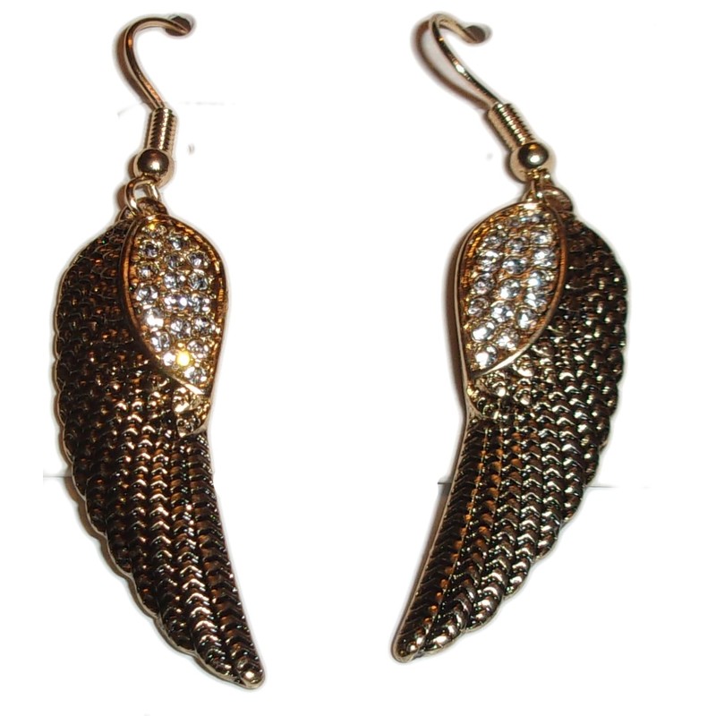 Fashion Jewelry ~ Antique Goldtone Angel Wing Drop Earrings for Women Casual (HE184-AGCR)