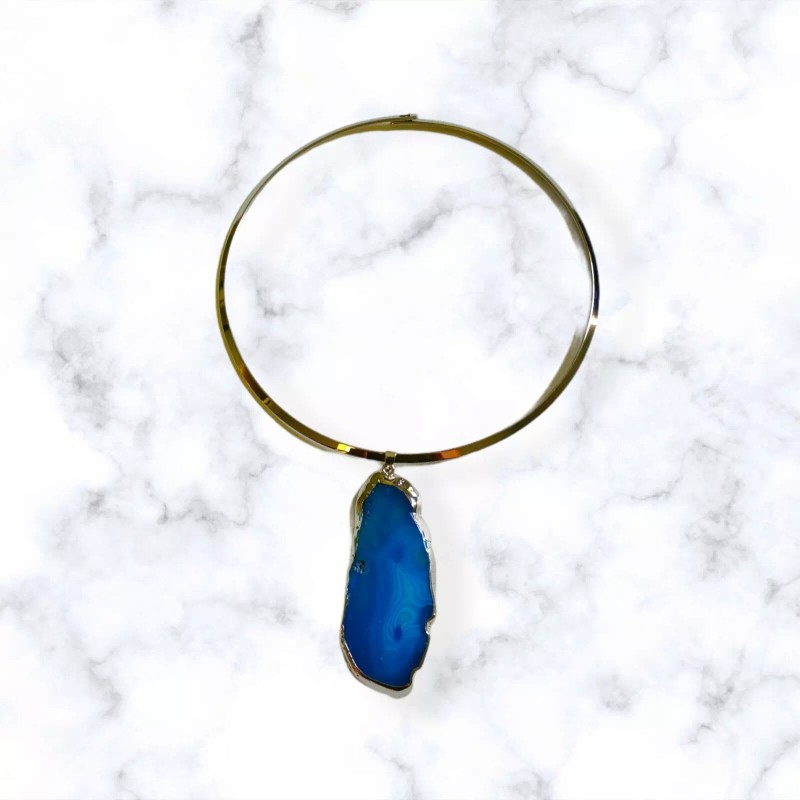 Showcase your unique style with this stunning blue agate pendant necklace. The oval-shaped gemstone is set in a beautiful sterling silver bezel, which adds to the natural beauty of the necklace. The choker-style necklace has a 19-inch cable chain with a turnlock closure for a secure fit, making it perfect for any occasion.