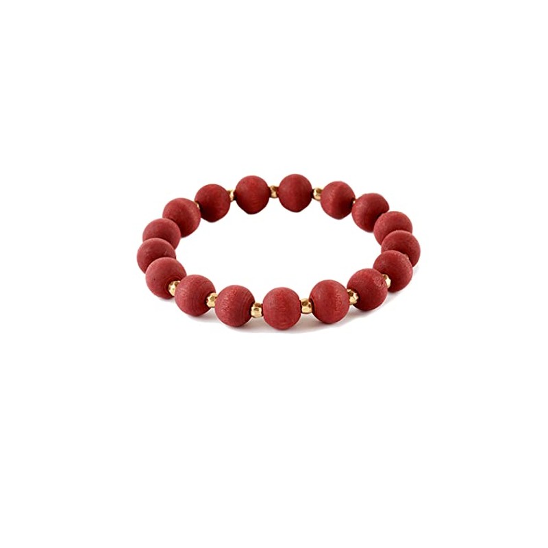 Fashion Jewelry ~ Burgundy Wood Ball Bead Stretch Bracelet for Women Casual