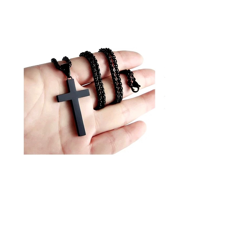 Fashion Jewelry Men 2" LARGE CROSS CHRISTIAN PRAY HOPE FAITH ROYAL BLACK Pendant 24" Necklace