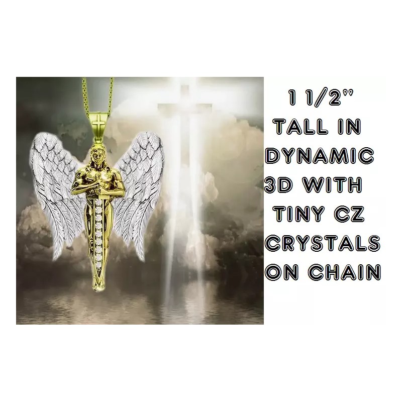 Fashion Jewelry SAINT MICHAEL ARCHANGEL ANGEL WING FAITH Pendant on 24" 925 Plated Silver Chain