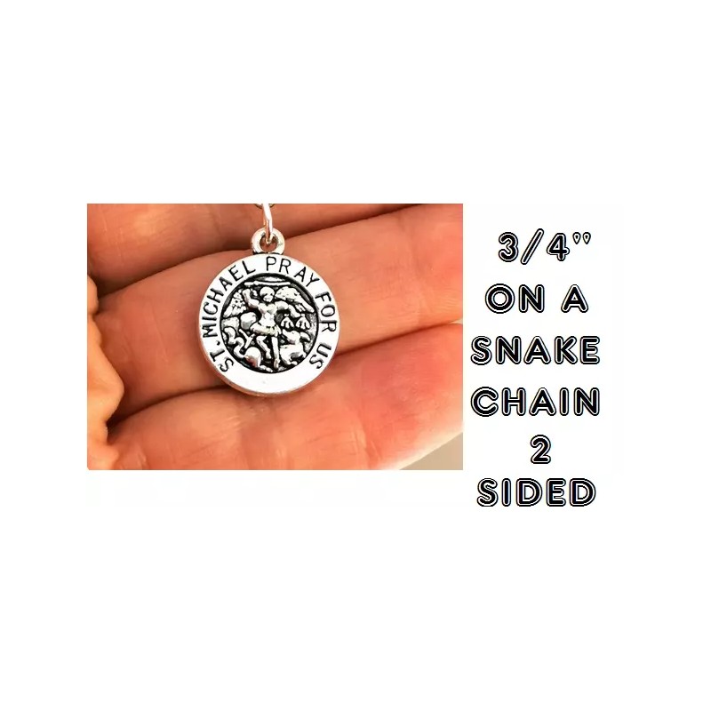 Fashion Jewelry Small SAINT MICHAEL PRAY ARCHANGEL ANGEL Charm On 18" 925 Silver Snake Necklace