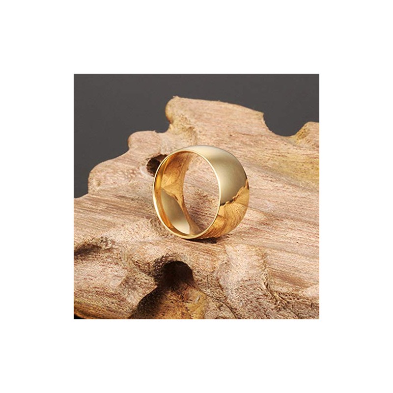 Fashion Month Mens 12mm Classic Gold Wedding Engagement 316L Stainless Steel Ring Dome High Polished Band, 316L Stainless Steel Titanium