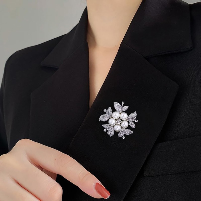 - Design: Flower brooch made up of alloy and white Pearl. This Brooch looks very elegant and noble.