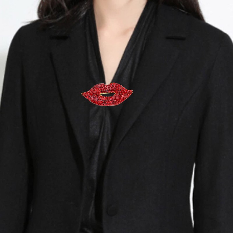 - Pretty and elegant ,very lovely crystal of the lip brooch, color and high quality look is amazing, especially drawn to the exterior of this red lip. you'll enjoy wearing it and have heaps of compliments! A beautiful and unique piece. This makes for a great addition for prom dresses, as a sparkly finish to a corsage, the centerpiece of a brooch bouquet... the possibilities are endless.