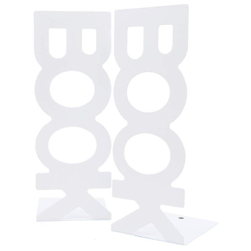 Fashion Simple Style Lengthways Vertical Book Pattern Nonskid Art Decorative Metal Solid Bookends for Home Office Study Book Shelf (White)