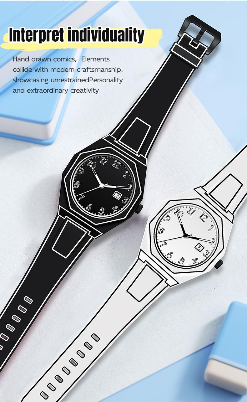 Fashionable Men's Watch, 3D Sketch Art Design with calendar,Silicone Case & Band, Analog Display, Battery-Operated Modern Creative Leisure - Color: Black