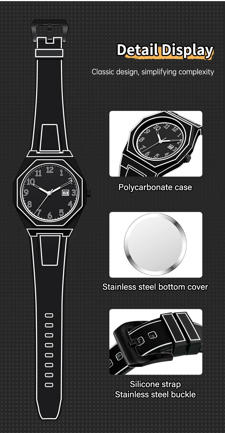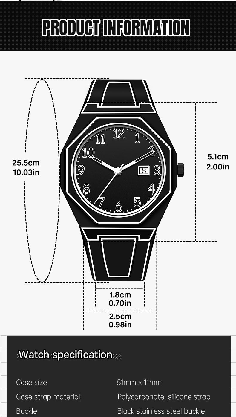 - 【Durable & Tough】Polycarbonate and silicone strap, black stainless steel buckle for a rugged, bold look.