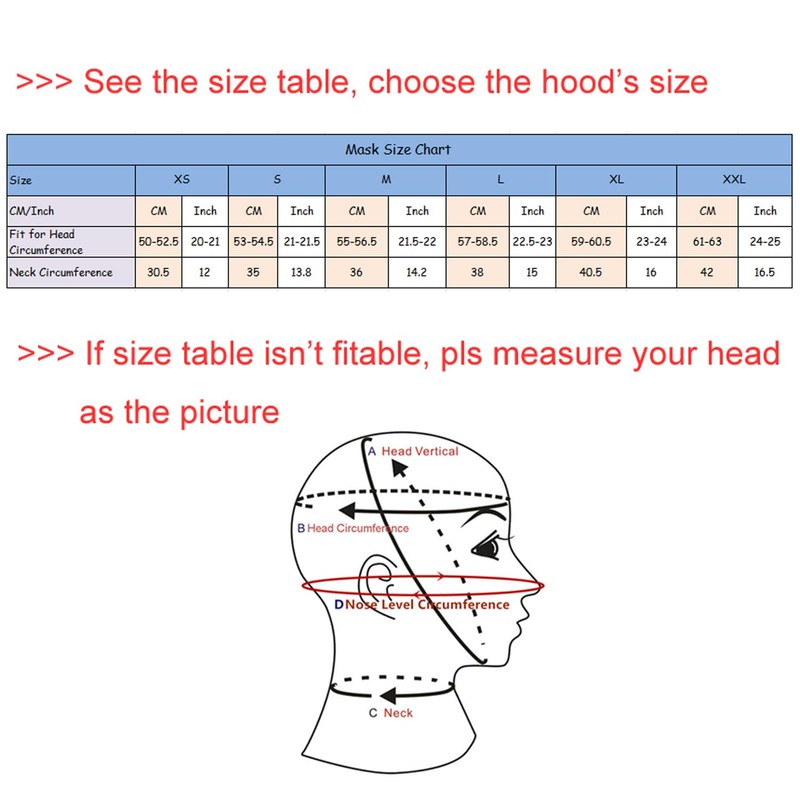 Suitable for head circumference: S 20-21 inches, M 21-21.5 inches, L 21.5-22 inches, XL 22.5-23 inches, XXL 23-24 inches.