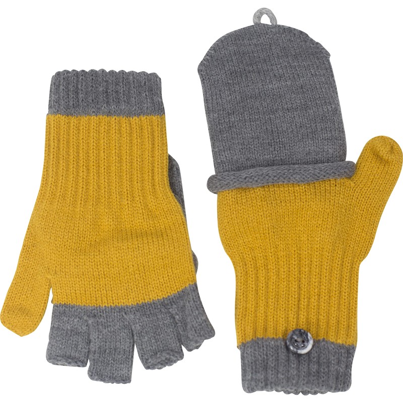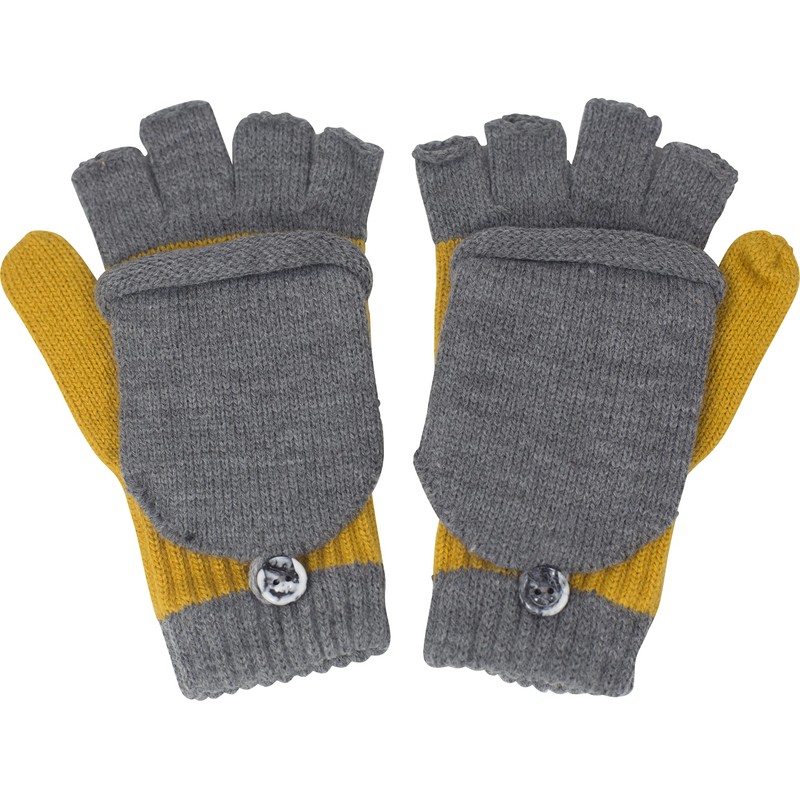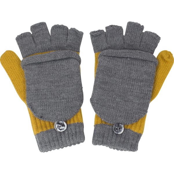 fashionchimp Children's Half Finger Gloves with Cap, Warm Mittens, Plain Colours, Made in EU, Grey Curry