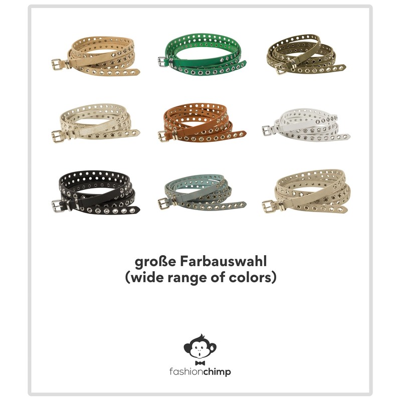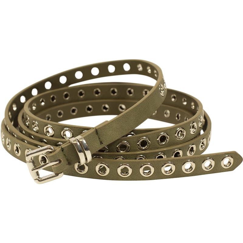 fashionchimp Double Belt for Women, Wrap Belt with Hole Rivet Trim and Silver Clasp, Width Approx. 1.5 cm, olive