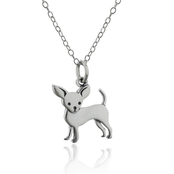 FashionJunkie4Life Dog Necklace for Women | 18” Sterling Silver Necklace with Chihuahua Dog Charm | Sterling Silver Dog Jewelry for Dog Lovers