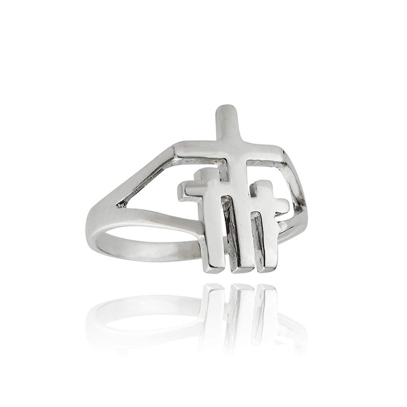 FashionJunkie4Life Sterling Silver Three Crosses of Calvary Ring, Sizes 6-9, Christian Religious Faith (7)
