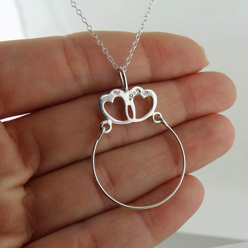 FashionJunkie4Life Sterling Silver Two Hearts Charm Holder Pendant Necklace, 18" Cable Chain, Display Your Favorite Charms