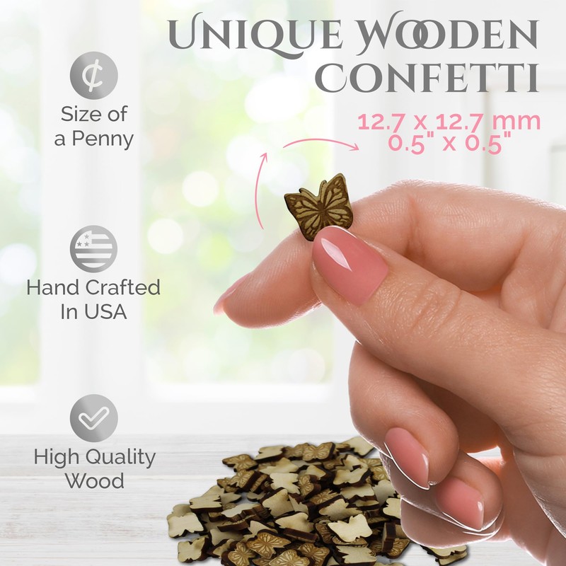 FashionJunkie4Life Wooden Butterfly Confetti | 0.5” x 0.5” 100 Pieces for Table Scatter, Birthday Decorations, Wedding Decor, & Other Party Decorations