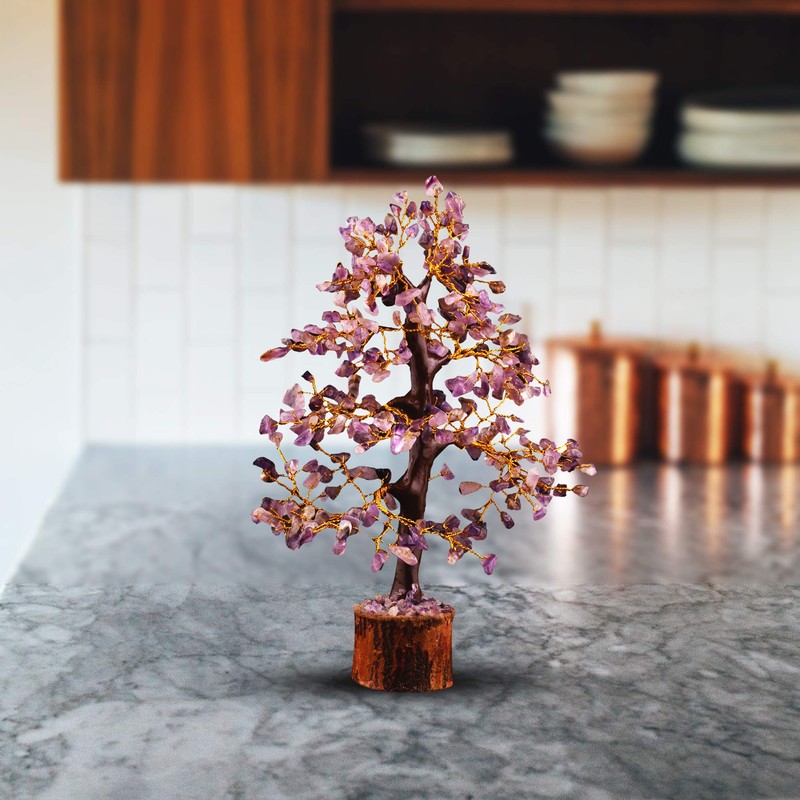 FASHIONZAADI Amethyst Bonsai Money Tree Feng Shui Crystal Gemstone Trees Chakra Stone Healing Crystals Good Luck Home Office Table Décor Health Prosperity Size 10-12 inch (Golden Wire)
