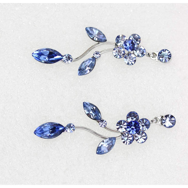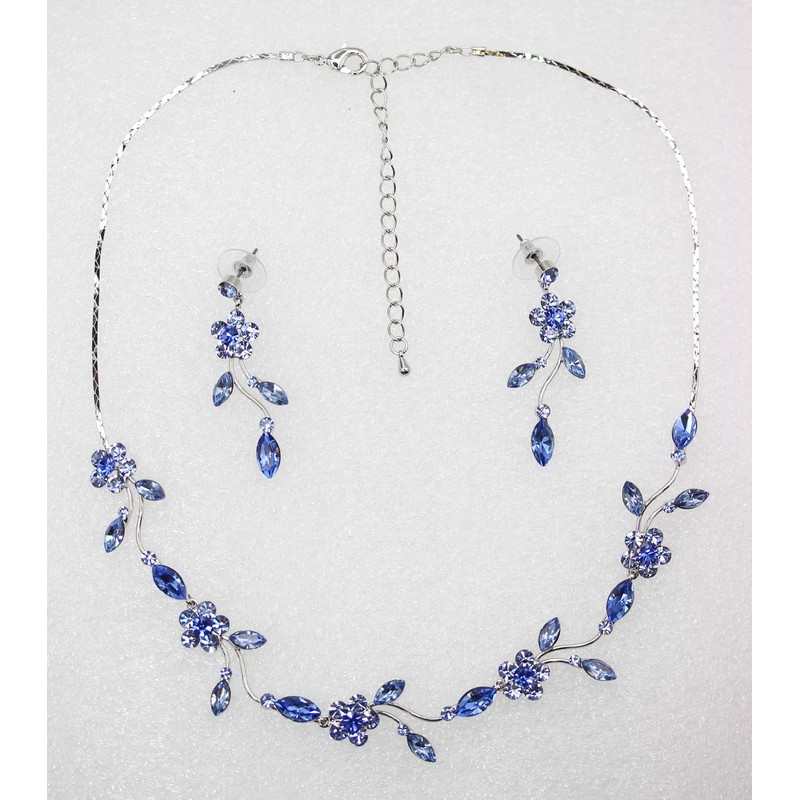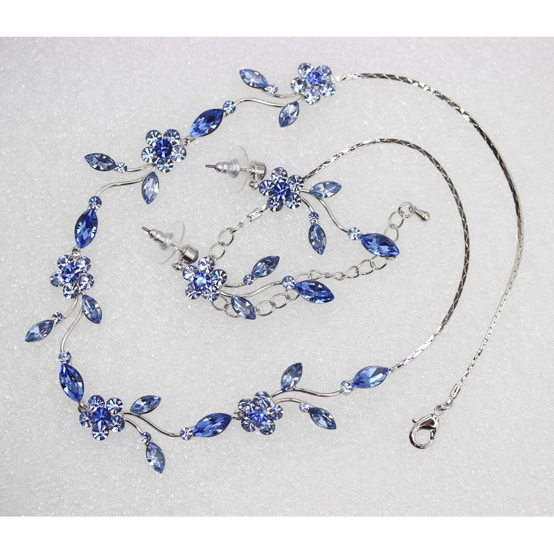 Faship Gorgeous Blue Rhinestone Crystal Floral Necklace Earrings Set - Blue,91101304925403-C1N11