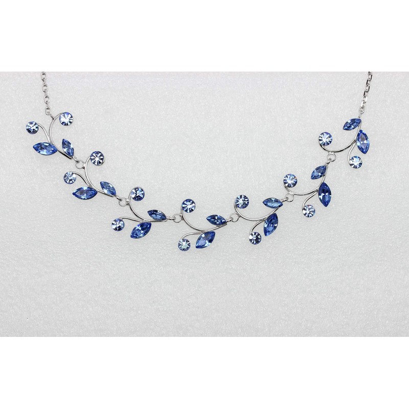 Faship Gorgeous Blue Rhinestone Crystal Floral Necklace Earrings Set - Blue