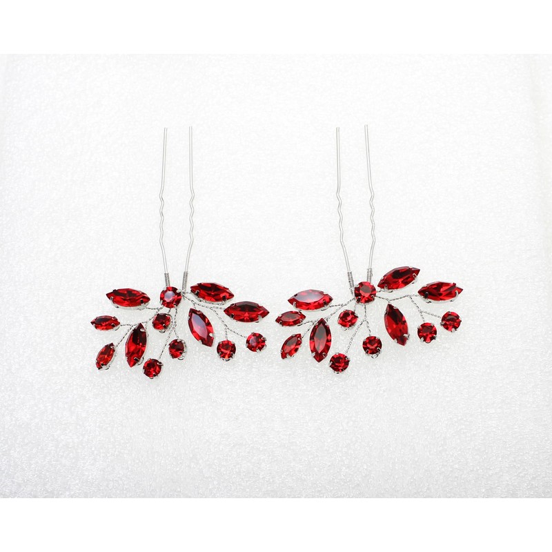 Faship Gorgeous Red Rhinestone Crystal Floral Hair Pins Accessories 2 Pcs