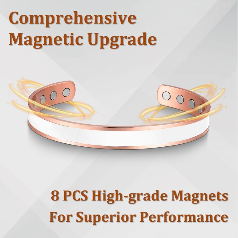 Fashtour Copper Bracelet for Women Black Oil Cuff Bangle 3500 Gauss Powerful Magnets Adjustable Girls Jewelry (Simple style, rose gold white, 5.5inches)